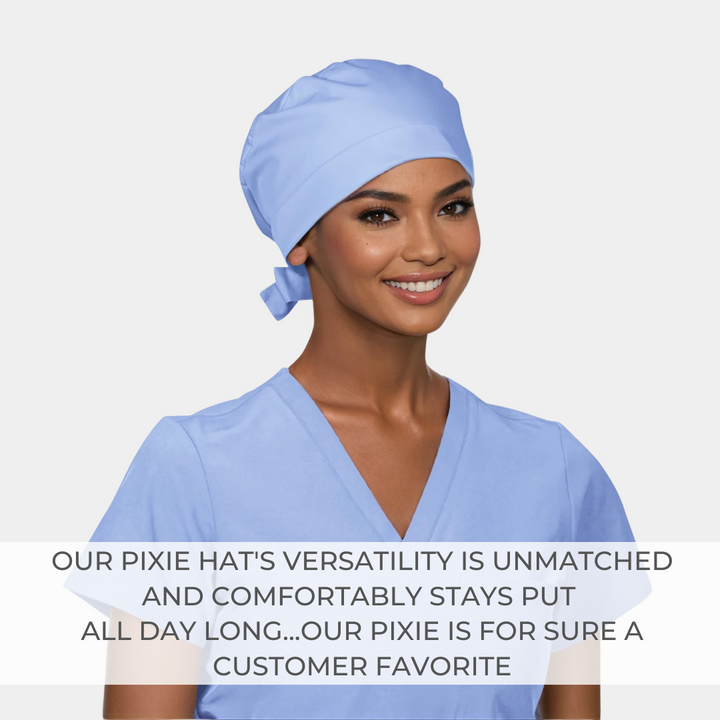 - Pixie scrub caps that offer a sleek, lightweight fit