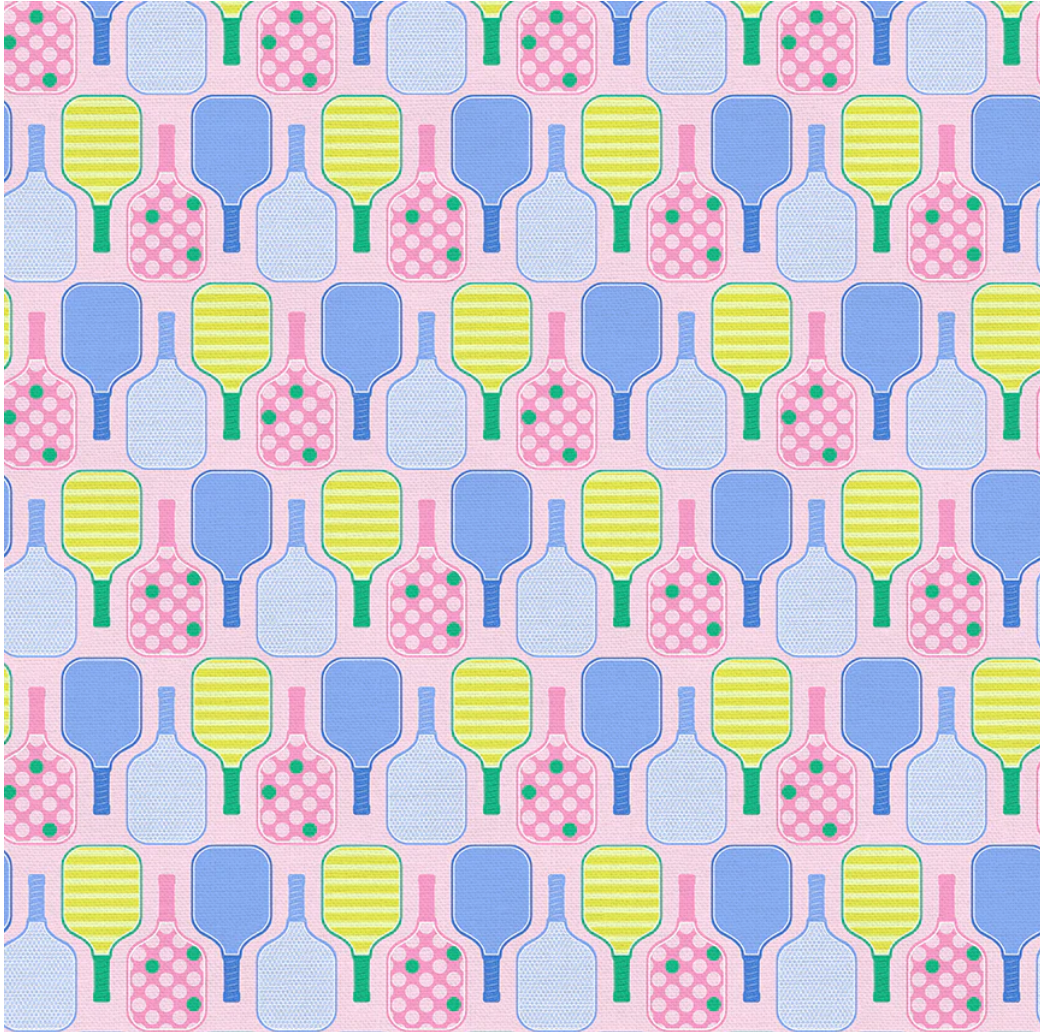 Serve up some serious style with this vibrant pickleball paddle party! Featuring a playful mix of polka dots, stripes, and bold color blocks in sunny yellow, bubblegum pink, sky blue, and fresh green, this pattern is a celebration of fun, flair, and fierce court energy. It's ace vibes all the way!