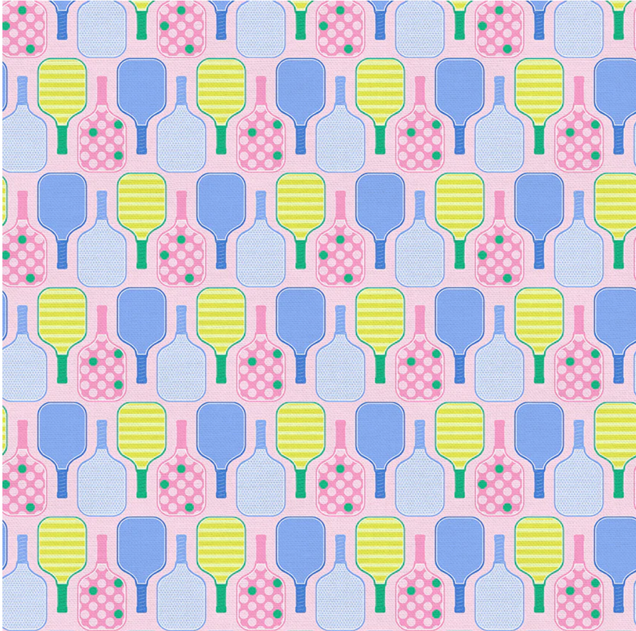 Serve up some serious style with this vibrant pickleball paddle party! Featuring a playful mix of polka dots, stripes, and bold color blocks in sunny yellow, bubblegum pink, sky blue, and fresh green, this pattern is a celebration of fun, flair, and fierce court energy. It's ace vibes all the way!