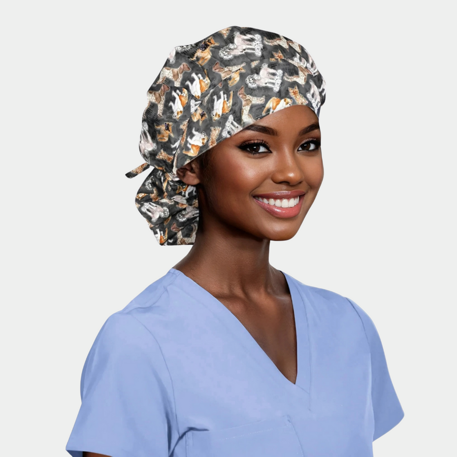 Adorable pups of every shape and size frolic against a moody gray backdrop, adding a splash of whimsy to the scene