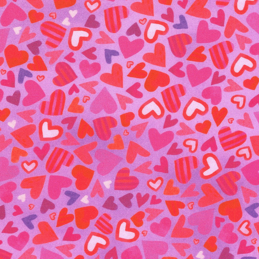 This vibrant explosion of pinks, reds, and purples feels like a joyful heart-shaped confetti storm, dancing across a playful lavender sky, bringing a whimsical, love-filled energy to every glance.