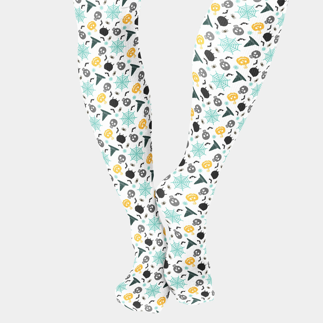 Pair these super fun and festive compression socks with pewter scrubs and a black nurses jacket for a wicked good time.