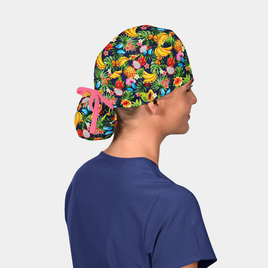 A tropical medley of lush fruits and vibrant florals bursts to life in this playful, island-inspired print that’s as fresh and fun as a summer getaway.