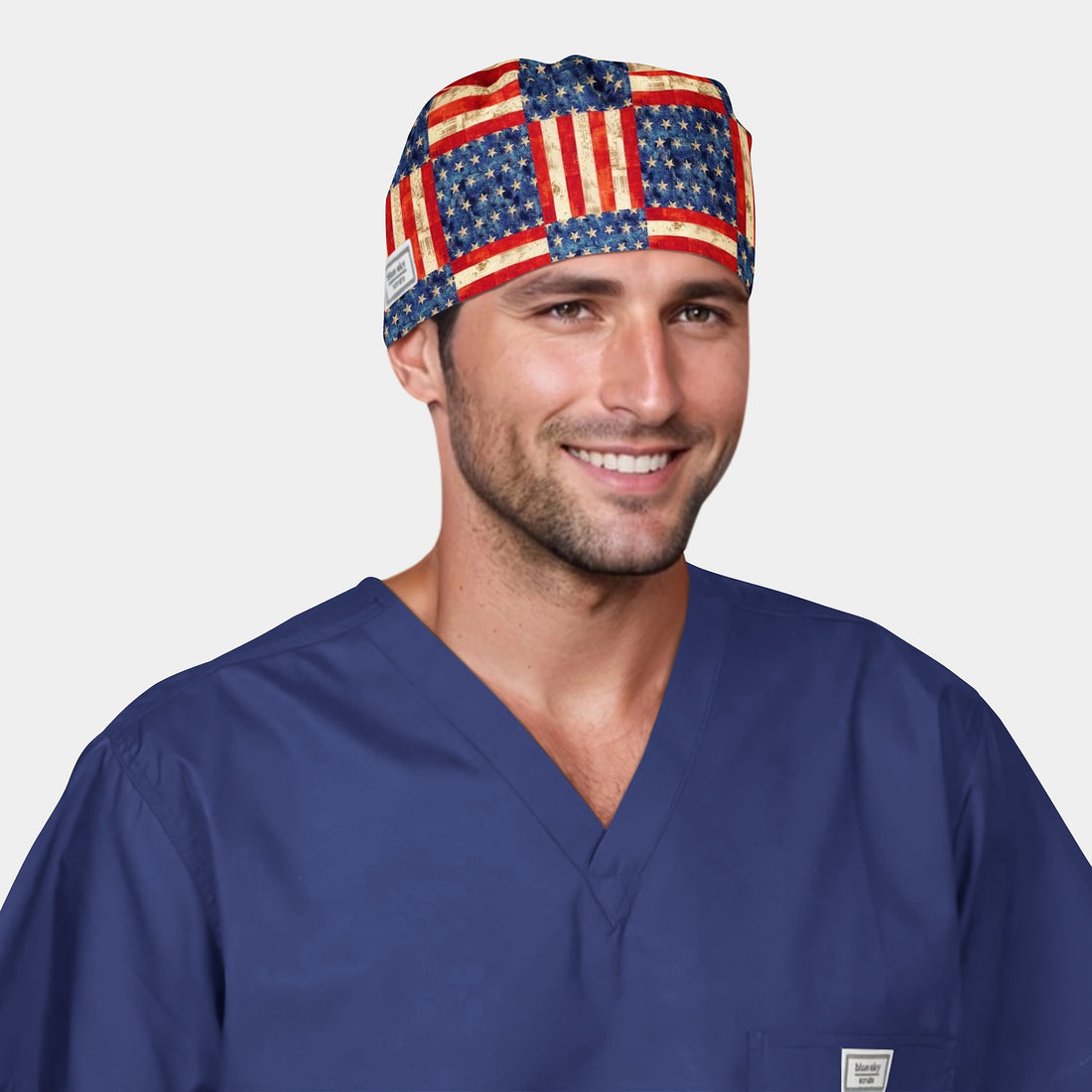 Pair our navy scrubs for men from our ultra soft and stretchy scrubs collection to go with this patriotic men's scrub cap.