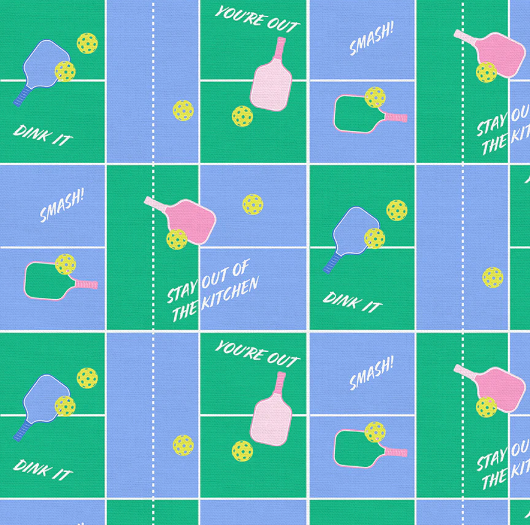 Paddles, pickleballs, and playful court lingo collide in a colorful rally of fun—this pattern serves up nonstop energy with a sporty twist!